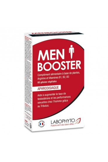 Men Booster est un complément alimentaire aphrodisiaque pour hommes, à base de plantes, Arginine et vitamines B1, B2, B3 qui stimule la libido et aide à augmenter le taux de testostérone et les performances sexuelles chez l'homme grâce au Tribulus.