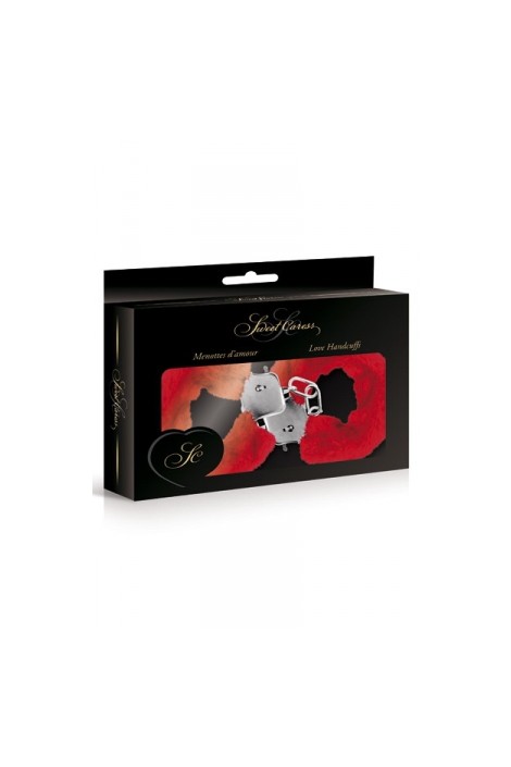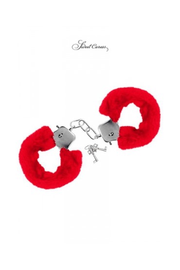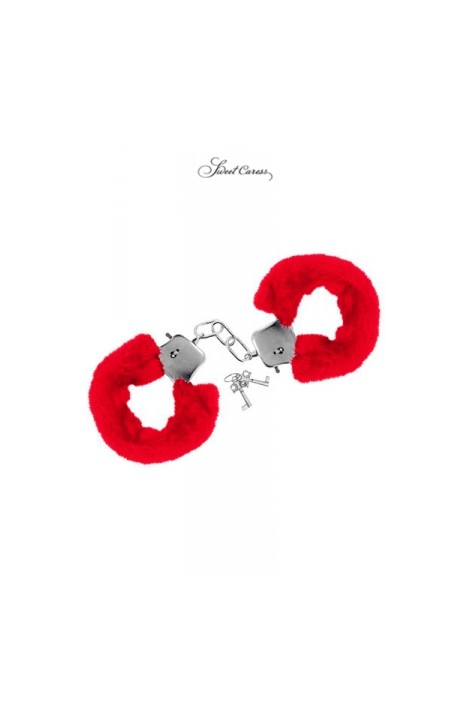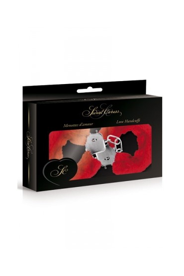 Paire de menottes Glamour en métal, recouvertes d'une fourrure rouge, par Sweet Caress.