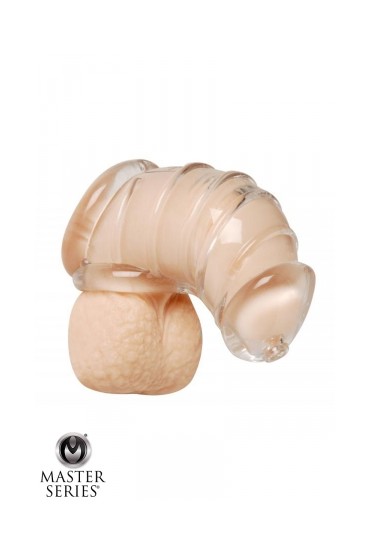 Totalement transparente pour ne rien cacher de vos attributs de soumis, la cage permet d'enfermer le pénis tout en l'écartant des testicules, elles mêmes bien rangées grâce à un trou à la base de la cage. A son extrémité, une ouverture permet d'uriner ou de laisser couler le sperme sans ôter la cage.