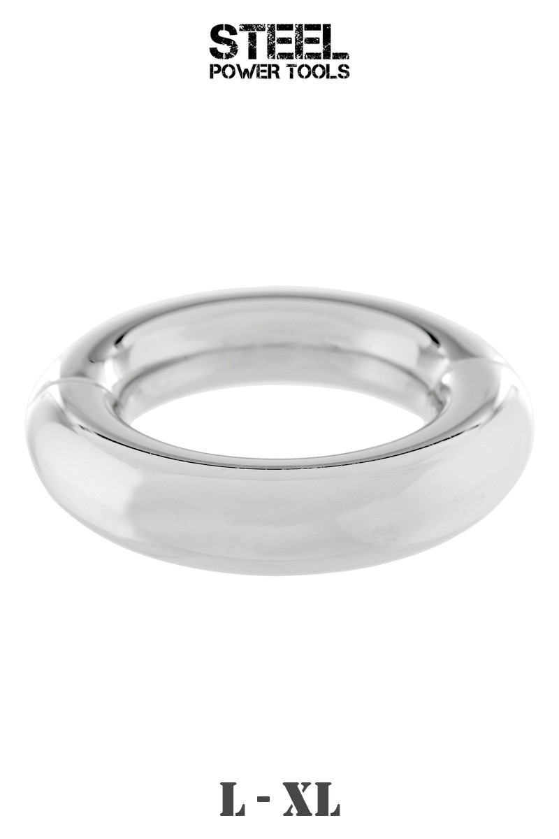 Le ball stretcher Steel Power Tools (taille L ou XL) est un accessoire BDSM pour hommes de grande qualité qui produit une contrainte sur les bourses en les étirant et se verrouille à l'aide d'une clé allen.