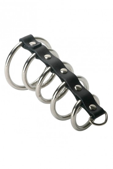 Dispositif de chasteté pour le pénis composé de 5 anneaux métalliques reliés permettant de rendre votre érection délicieusement inconfortable, par XR Brands.