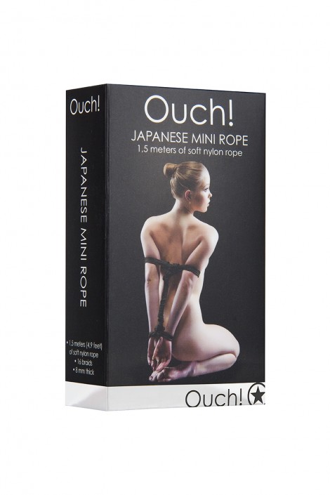 Pour les amateurs de bondage japonais, la marque Ouch! propose cette corde noire "Japanese Mini Rope" en nylon, à la fois douce et solide, d'une longueur de 1,5 mètres, idéale pour attacher les chevilles ou les poignets.