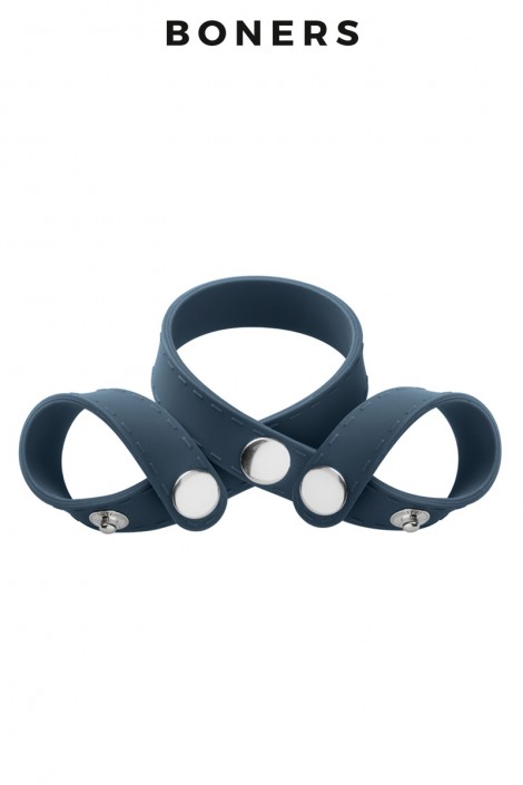 La marque Boners présente le "8-Style Ball Splitter", un séparateur de testicules en silicone et métal qui met parfaitement en valeur vos attributs masculins tout en stimulant la verge et les testicules.