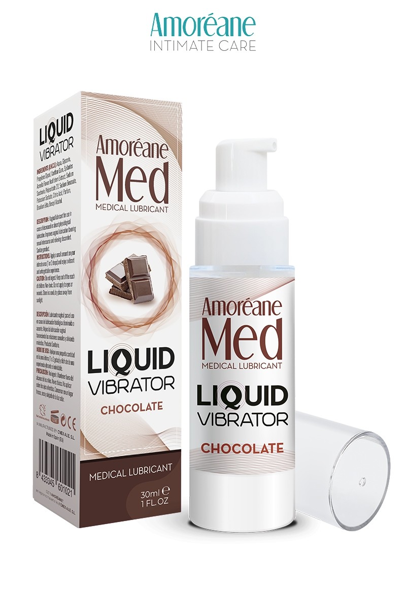 Liquid Vibrator Chocolat, fabriqué par Amoréane Med est un lubrifiant intime médical à base d'eau parfumé au chocolat avec effet vibrant.