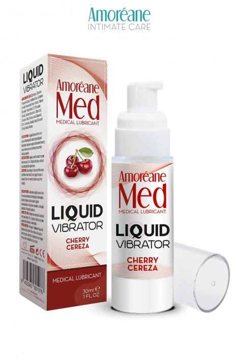 Liquid Vibrator cerise, fabriqué par Amoréane Med est un lubrifiant intime médical à base d'eau parfumé à la cerise avec effet vibrant.