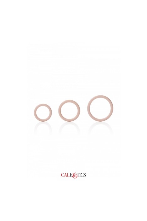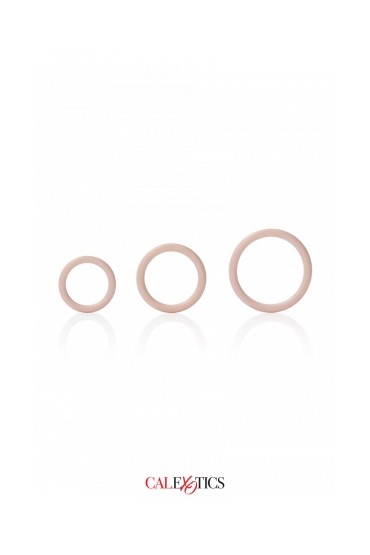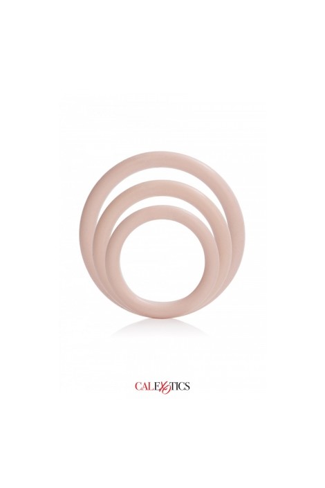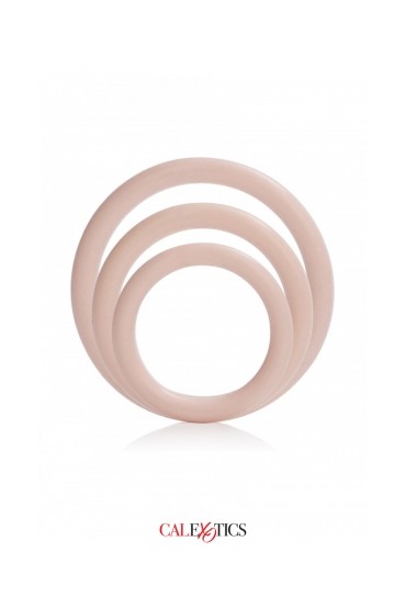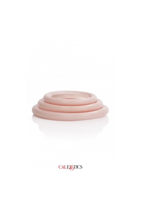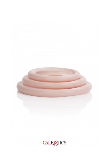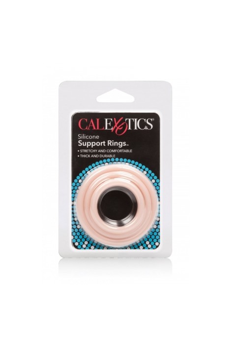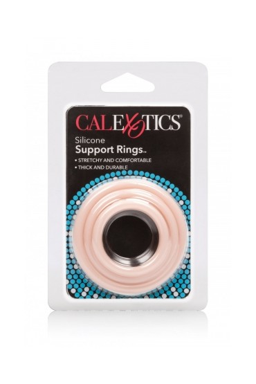 le pack Silicone Support Ring de la marque Calexotics contient 3 anneaux de diamètres différents: 3,25 cm, 3,5 et 4,5 cm. Les anneaux sont conçus en silicone de qualité supèrieur. Ils sont extensibles, confortables à porter et utilisables comme cockrings, ballrings ou pour n'importe quel autre usage.